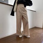 柔らかなコーデュロイ素材が、秋冬コーデにぴったりのあたたかみをプラス。程よいワイドシルエットで体型をカバーしつつ、リラックス感のある大人カジュアルスタイルを叶えます。
