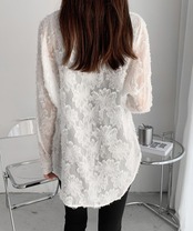 【送料無料】長袖トップス シアーフラワージャガードシャツ