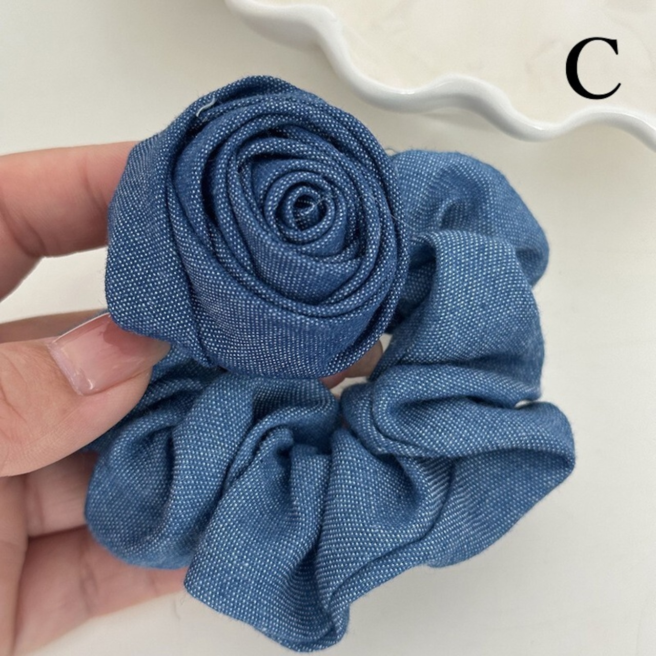 フラワーデザイン デニムシュシュ|大人可愛い 髪飾り